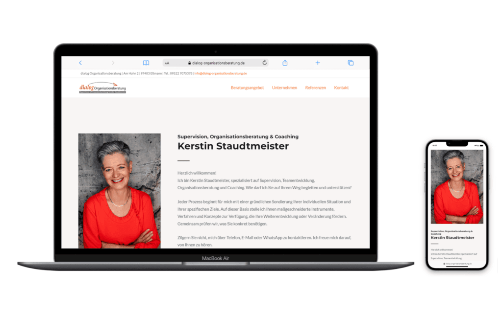 Für Kerstin Staudtmeister, Expertin in den Bereichen Supervision, Organisationsberatung und Coaching, habe ich eine komplett neue Website erstellt. Die Seite wurde mit WordPress umgesetzt und ist im responsiven Design gehalten, sodass sie auf allen Endgeräten optimal dargestellt wird. Besonderes Augenmerk lag auf der klaren Struktur und benutzerfreundlichen Navigation, um Kerstins vielfältiges Dienstleistungsangebot ansprechend zu präsentieren.